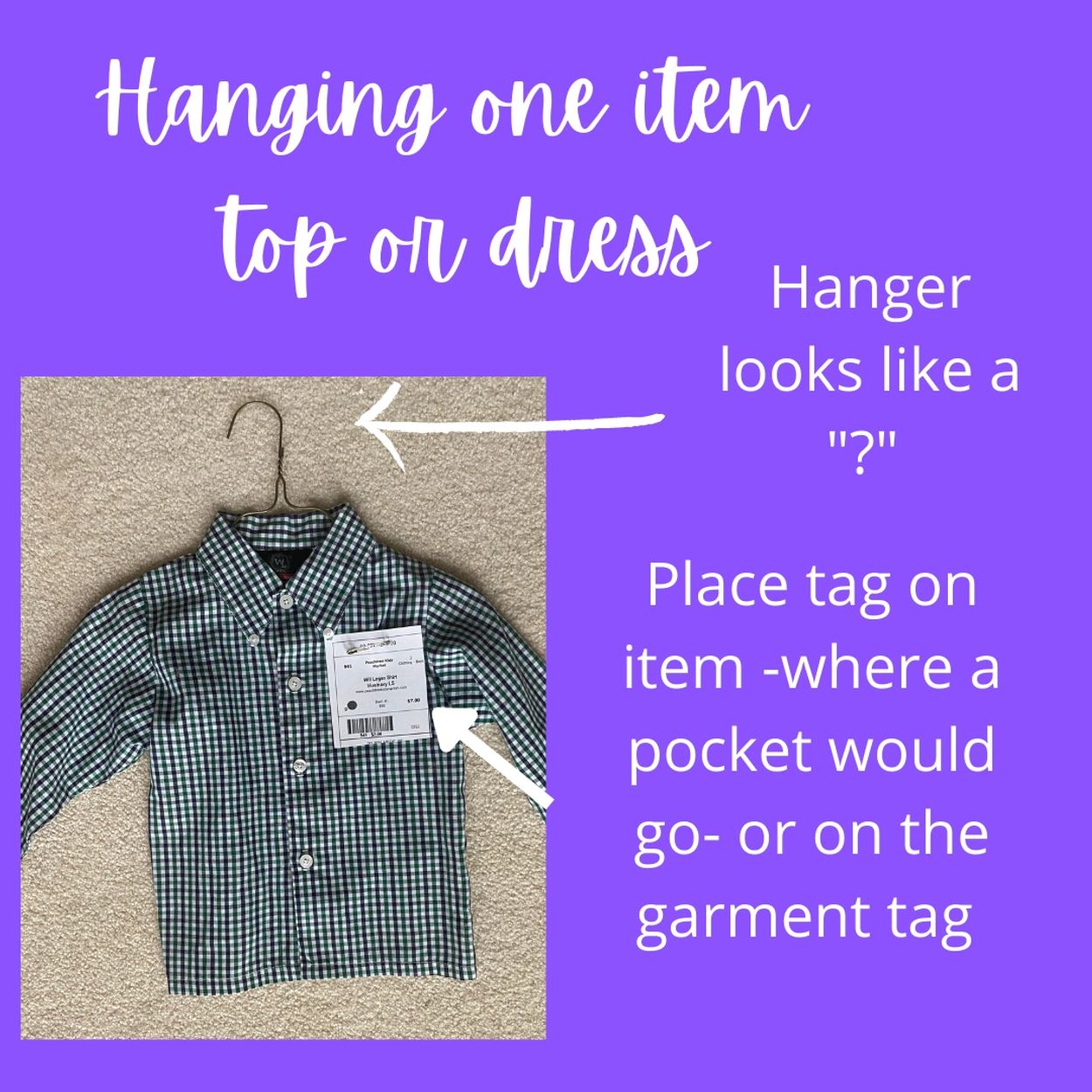 If items are hung wrong you will be asked to correct before putting on the sale floor.